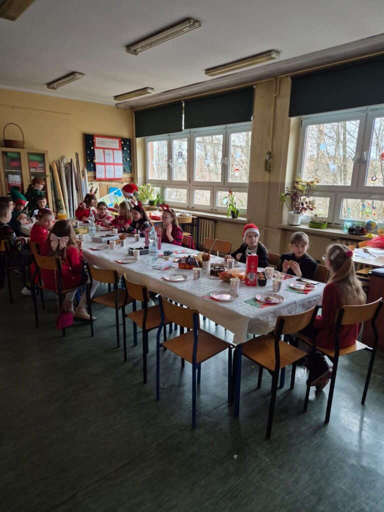 Z radością informujemy, że klasa 4A naszej szkoły podstawowej wspaniale świętowała swoją wigilijkę. W sali stanęła pięknie udekorowana choinka,