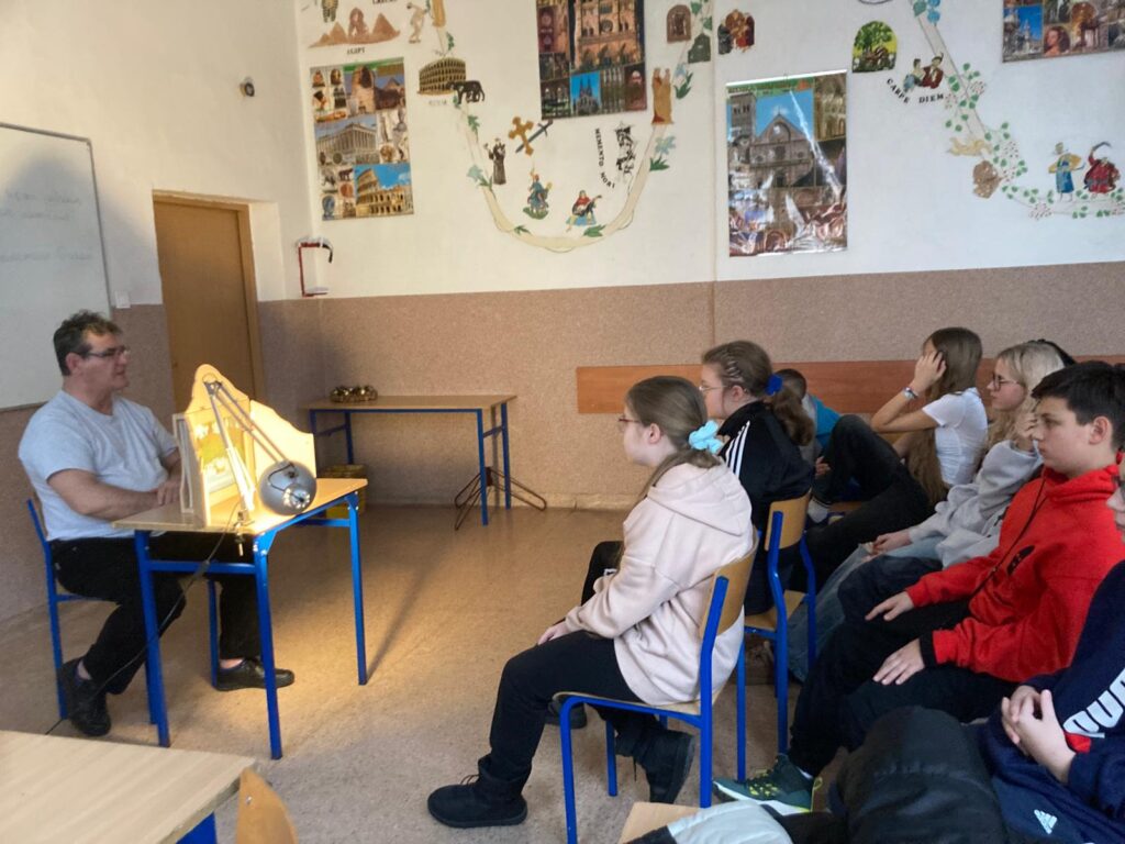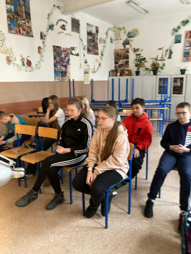 W dniu 21 stycznia 2025r,  klasa 7a uczestniczyła w zajęciach w ramach projektu ekologicznego Klimatyczne Katowice. W czasie zajęć uczniowie przyglądali się zjawiskom niszczenia lasów deszczowych, ich wpływom na degradację środowiska i na globalne zmiany klimatyczne. W czasie wyobrażonej wędrówki po lesie deszczowym na terenie Peru, wsłuchiwali się w dźwięki lasów amazońskich i podziwiali panoramę lasu tropikalnego. W zrozumieniu globalnych zjawisk przyrodniczych pomogła im opowieść teatrzyku kamishibai,  którą prezentował nauczyciel języka polskiego – Adam Kubik.