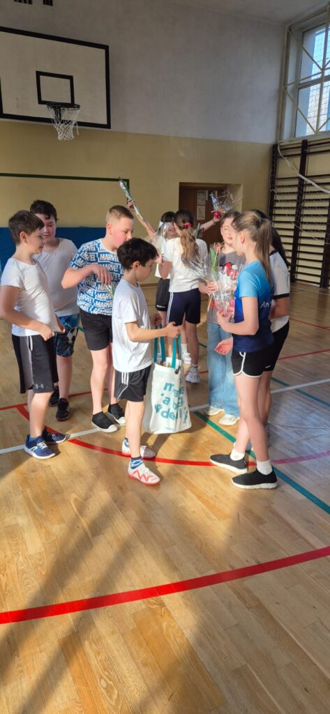 Z okazji Dnia Kobiet chłopaki z klasy 4A przygotowali niespodziankę dla wspaniałych koleżanek. 15 dziewczyn zostało obdarowanych pięknymi kwiatkami oraz słodkimi upominkami.