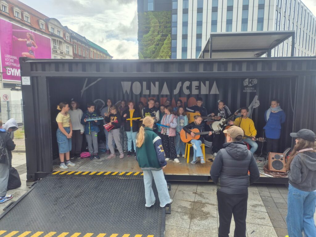 Dziś klasy 4 i 5 wzięły udział w wyjątkowym wyjściu na koncert plenerowy na Wolnej scenie obok Galerii Katowickiej. Było radośnie, głośno i bardzo muzycznie!