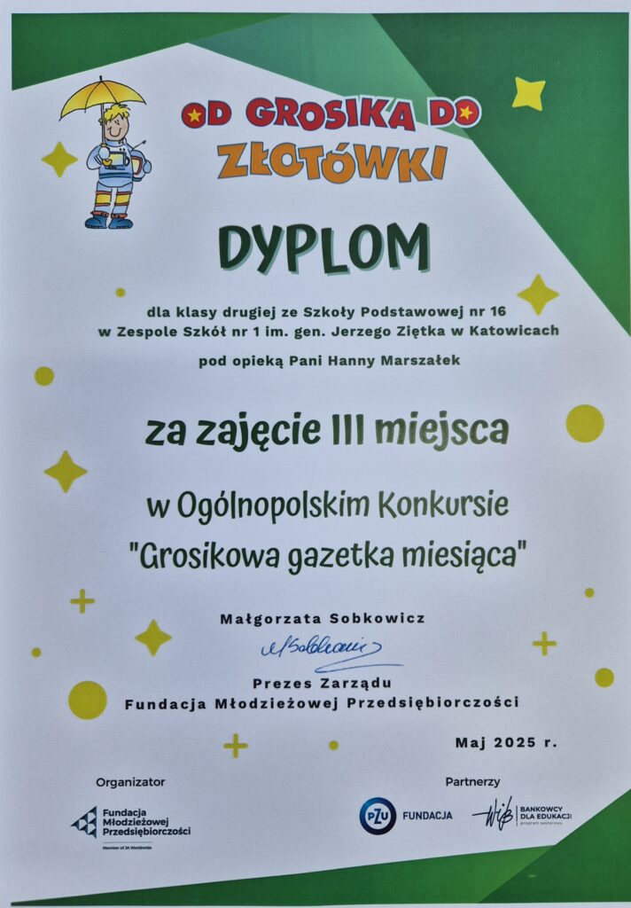 W ostatnim czasie klasa zdobyła III miejsce w ogólnopolskim konkursie „Grosikowa Gazetka Miesiąca”. Ponadto, uczniowie uzyskali dyplom za aktywny udział w realizacji projektu w ramach konkursu „Dzikie Zakątki”, który promuje troskę o środowisko i rozwijanie świadomości ekologicznej.