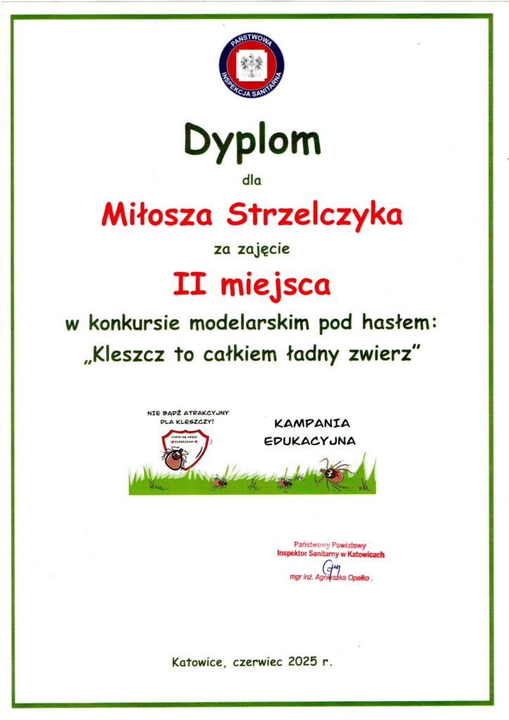 W sobotę 16 czerwca 2025r.  uczeń klasy 7a Miłosz Strzelczyk odebrał nagrodę za zajęcie  II miejsca