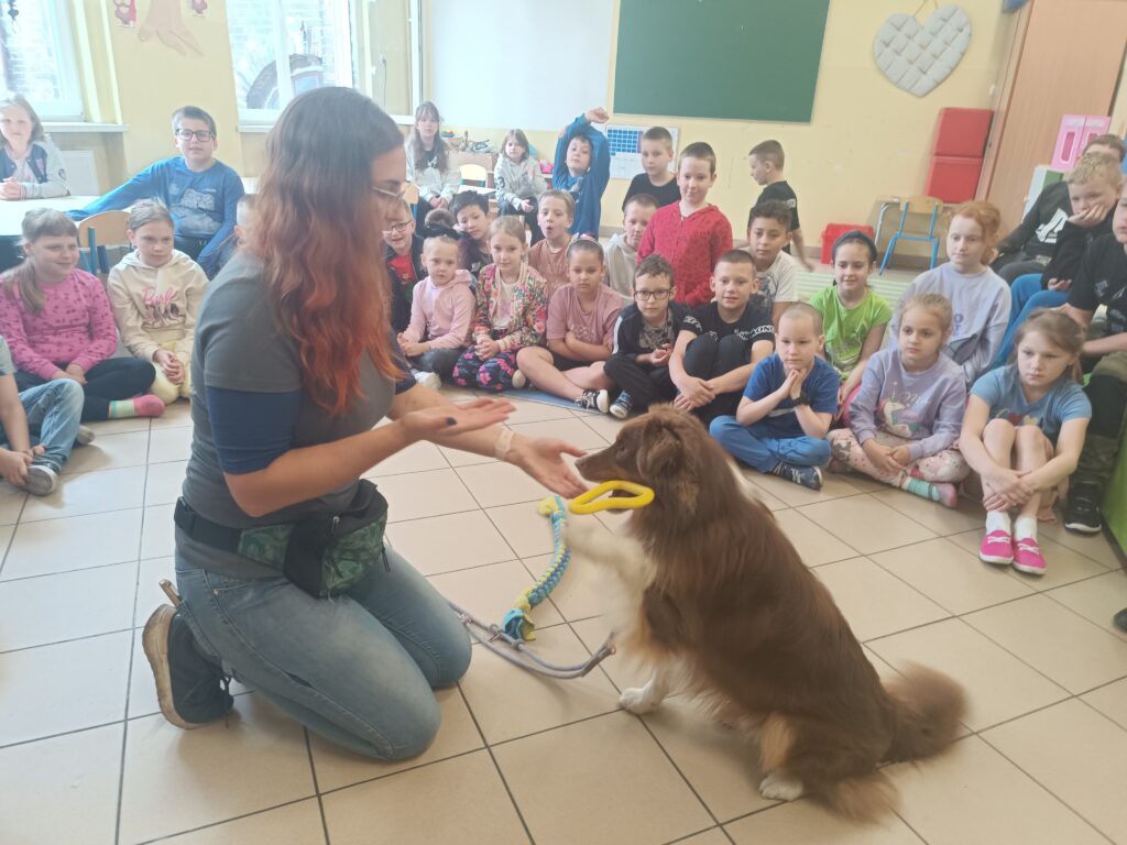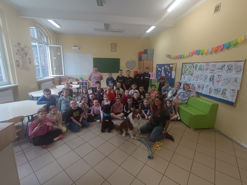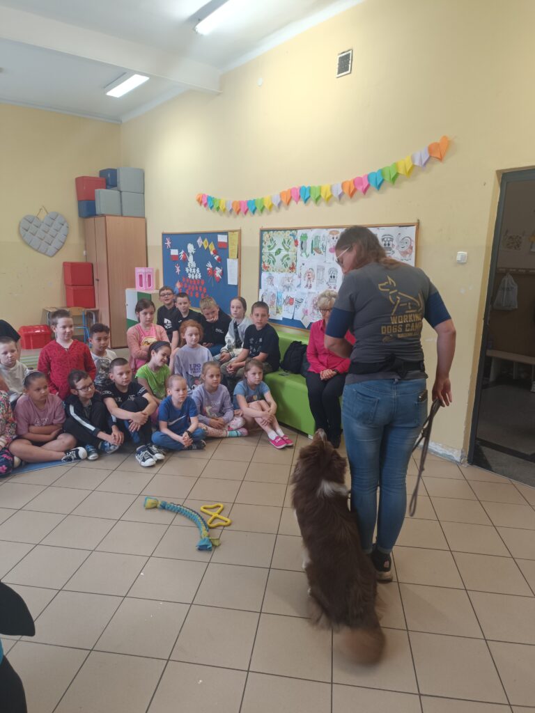 w zajęciach podczas których zostały omówione właściwe i bezpieczne sposoby komunikacji z psami. Akcja była zorganizowana w ramach działań Małego Wolontariusza a nasi uczniowie mieli okazję wesprzeć działaność fundacji. Wszystkich zachęcamy do odwiedzenia mediów społecznościowych i strony internetowej fundacji https://workingdogs.pl/