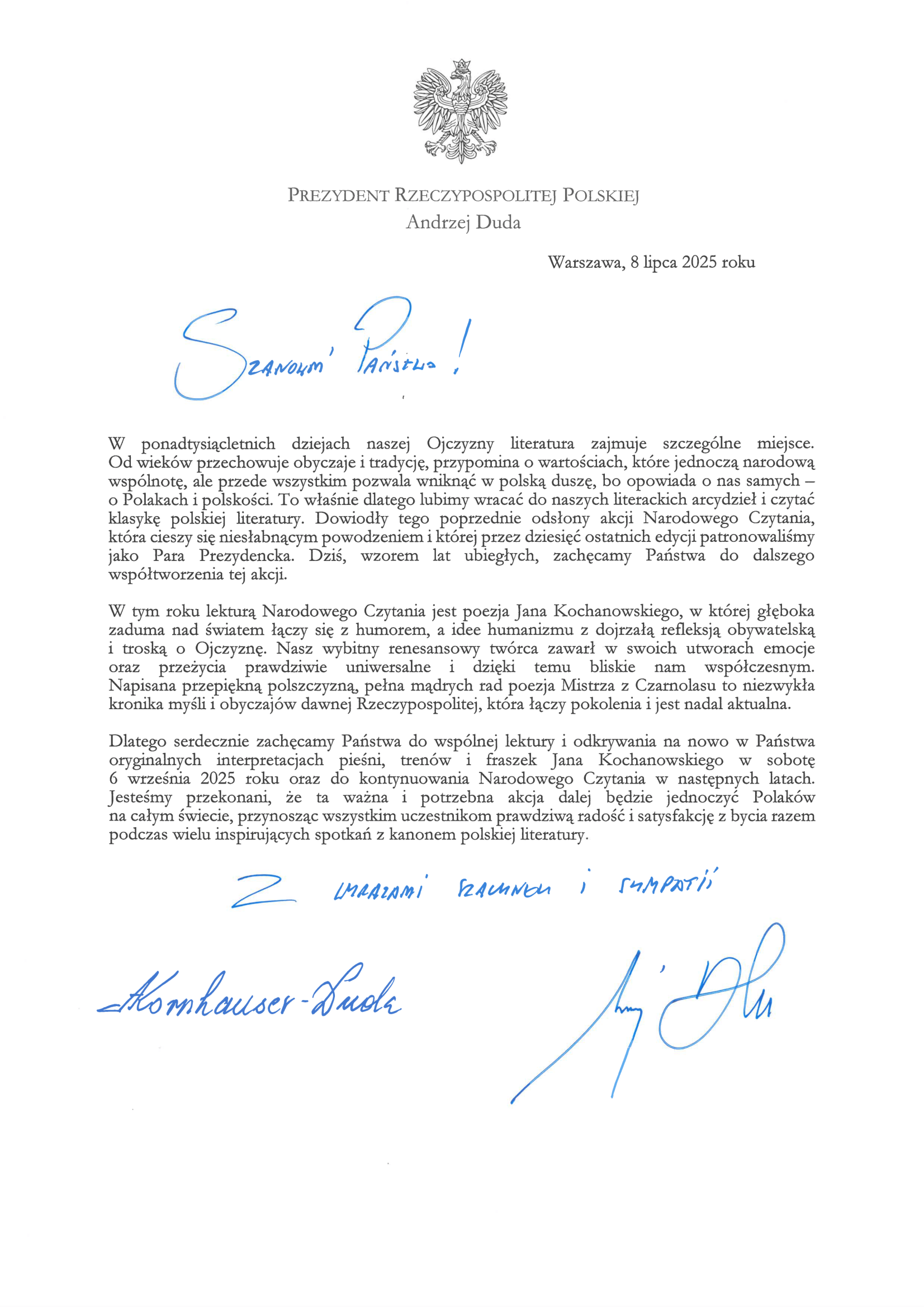 Z radością informujemy, że nasza Szkoła po raz kolejny przystępuje do ogólnopolskiej akcji Narodowe Czytanie! W tym roku od 8 do 11 września 2025 r., będziemy wspólnie czytać wspaniałą poezję Jana Kochanowskiego – mistrza renesansowego słowa, autora fraszek, pieśni i trenów.