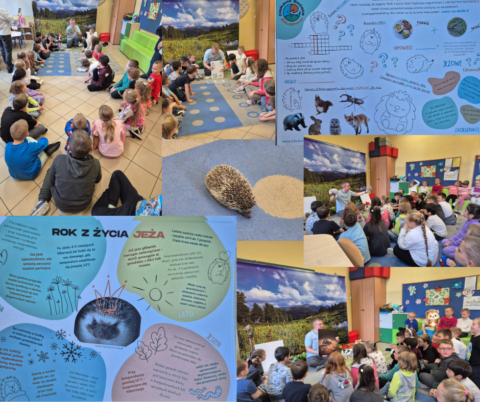 20.10 uczniowie klas 1-3 SP16 uczestniczyli w warsztatach przyrodniczych „Rok z życia jeża” prowadzonych przez Pana Jakuba Kowalewskiego z „Ciekawi świata. Edushow”. Dzieci poznały ciekawostki o jeżach, fakty z ich życia, dostrzegły użyteczność jeży dla przyrody i nas wszystkich, zaprzyjaźniły się z jeżem Jerzym, który również nas odwiedził. Możliwość pogłaskania jeża była dla dzieci dużą przygodą. Dzieci deklarują edukację dorosłych w temacie ochrony jeży, co bardzo nas cieszy.
