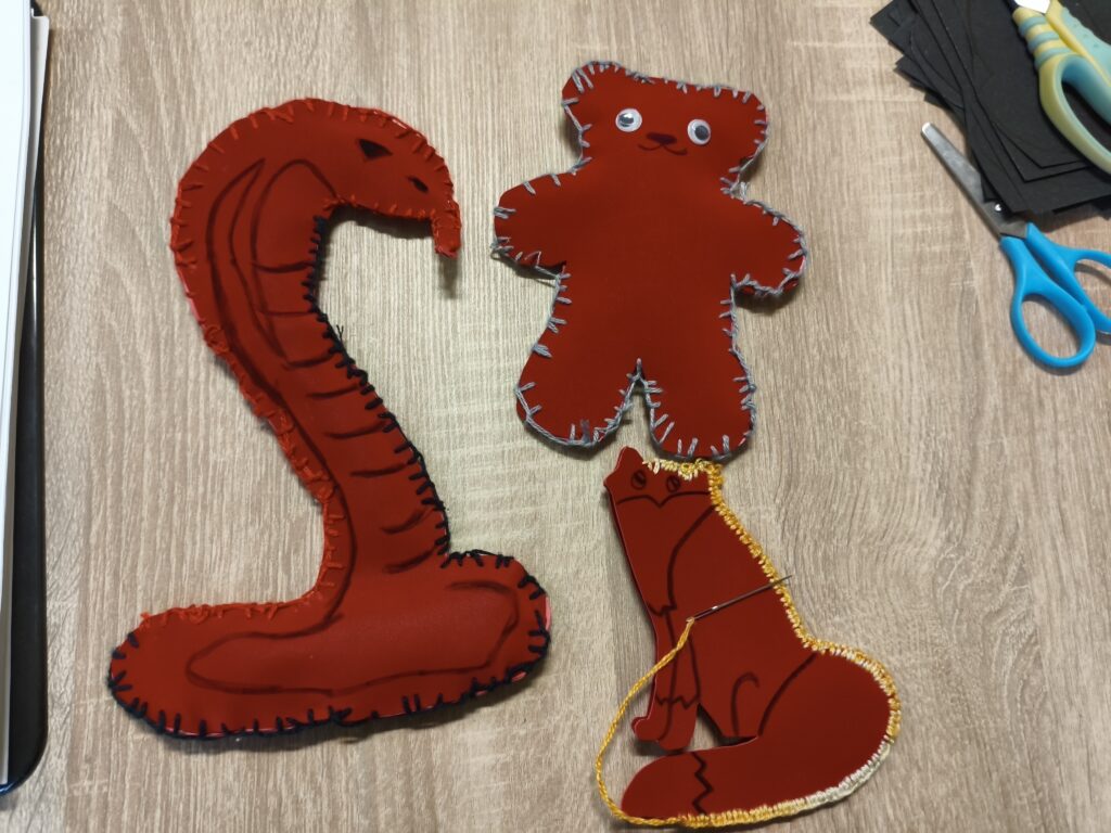 Największym wyzwaniem okazały się filcowe maskotki. Czerwone misie, kotki i rybki ożyły dzięki kolorowym mulinom. Dla wielu uczestników było to pierwsze spotkanie z igłą i nitką. Choć ściegi czasem biegły własnymi drogami, duma z własnoręcznie uszytego przyjaciela była bezcenna.